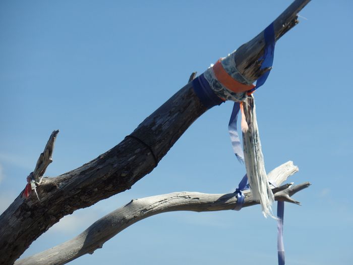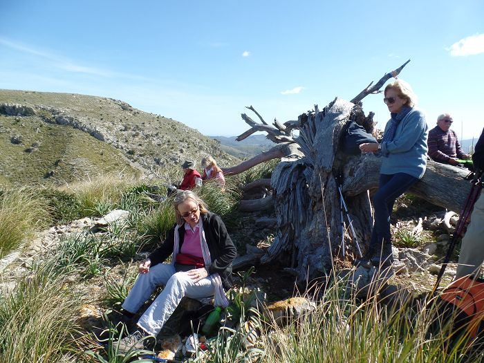 Vier An- und Abstiege machen die Wanderung sehr abwechslungsreich. Nach einer kurzen Trinkpause machten wir die große Pause auf der umgestürzten Pinie im Sattel vor dem Gipfel. Oben war es doch zu windig.