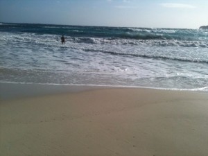 Um 9 Uhr20 liefen 5 Frauen und 3 Männer vom großen Parkplatz bei der Cala Agulla in Richtung Cala Mesquida. Am Vortag hatte es geschüttet und gestürmt, deshalb konnten wir nicht in die Berge gehen. Die Strecke , die wir gingen, hat einen sandigen Untergrund, wo das Wasser schnell versickert. Wir umkreisten den Puig Agulla von Westen und waren im Wald windgeschützt. Als wir zu den Dünen der Cala Mesquida kamen. fegte uns der Wind die Sandkörner ins Gesicht, deshalb wanderten wir durch das Tal des Torrents zurück. An ein gemütliches Picknick am Meer war nicht zu denken. Den Platz fanden wir am Waldrand in windgeschützter Lage.Über den Coll de Marina kamen wir zurück zur Cala Agulla.