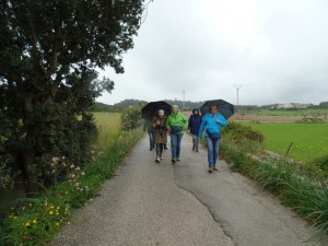 Freitag, der 13. ,das kann ja nur ein schlechtes Omen sein. Es waren Regen und sogar Gewitter angesagt, deshalb blieben wir bei Artá und parkten beim Agromarkt. Immerhin waren 8 Frauen und 2 Männer gekommen.Wir gingen nach Norden und sahen nach einigen Wegbiegungen ein Schild: Agrotourismo Estelrica. Wir waren neugierig geworden und beschlossen: Da gehen wir doch mal hin.Ich kenne das alte Gut seid 28 Jahren nur als verkommenes altes Gemäuer, um so erstaunlicher, was daraus geworden ist: ein modernes ,gepflegtes Landhotel. Eine elegante ,junge Frau zeigte uns eine moderne ,schicke Suite:Preis 100€ pro Nacht. Da es anfing zu regnen, durften wir im Frühstücksraum Kaffee trinken.Erika hatte ganz viel zu erzählen von ihrer Reise mit der ganzen Familie nach Marrakesch.